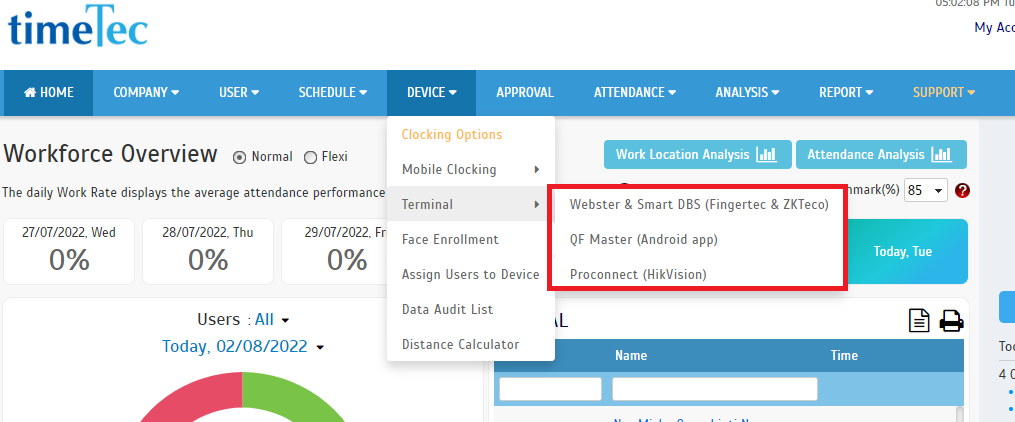 | The next update caters for companies that are using Hikvision devices as we recently integrated the Hikvision Proconnect platform with TimeTec TA. Admins can now add and manage Hikvision terminals at the Device > Terminal > Proconnect (Hikvision) page. Important notes: You must add the Hikvision devices to Hikvision’s Proconnect platform before you can connect the terminals to TimeTec cloud solutions. Currently, we only assign Hikvision terminals under TA as Application Type. You can use the device for attendance only. You can manage users amongst all devices and capture all records from the devices which will be treated as attendance data. Please refer to the sample screenshots below for further details: a. Device > Terminal – Added New Sub-menu ‘Proconnect (Hikvision)’ |